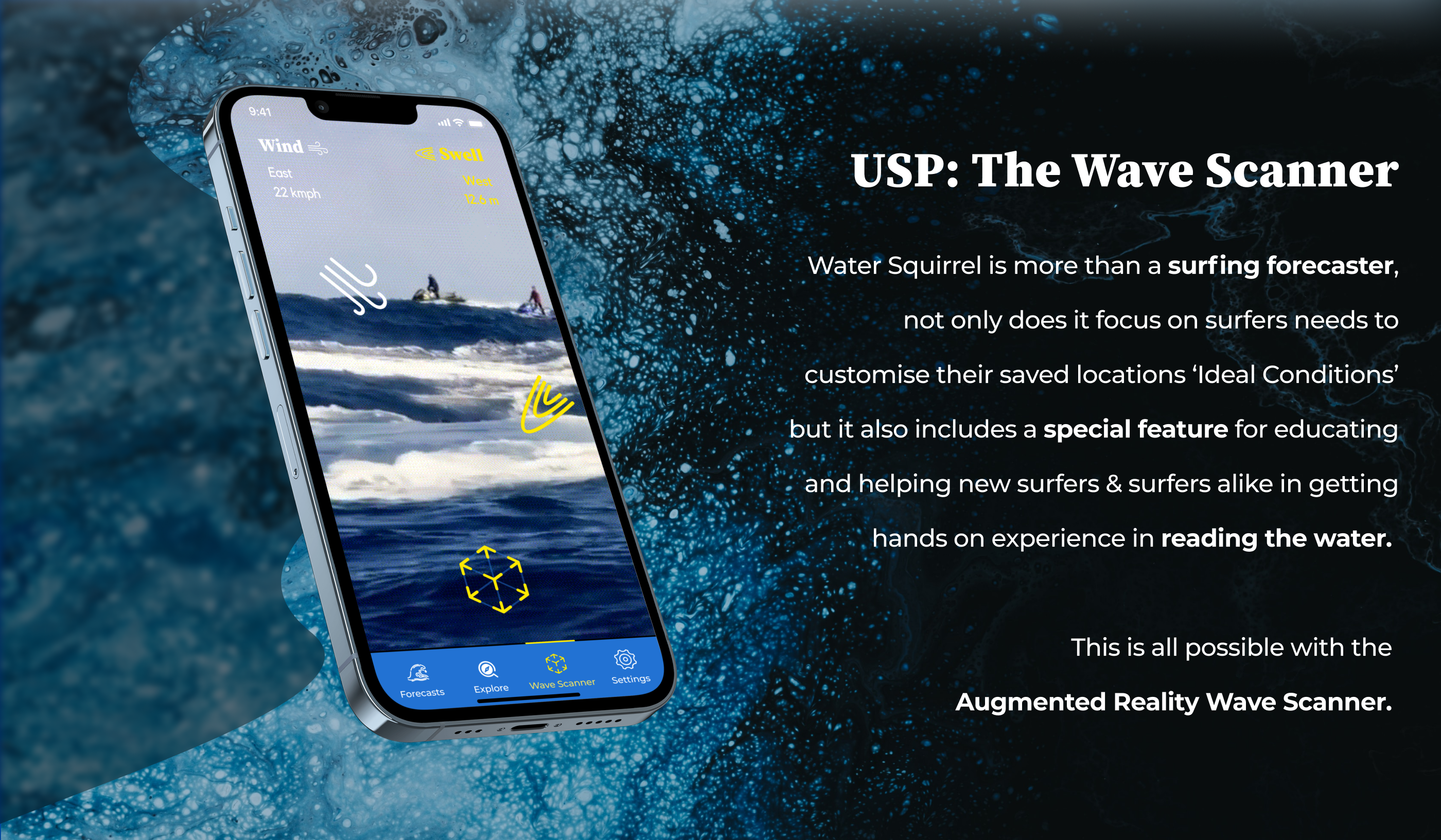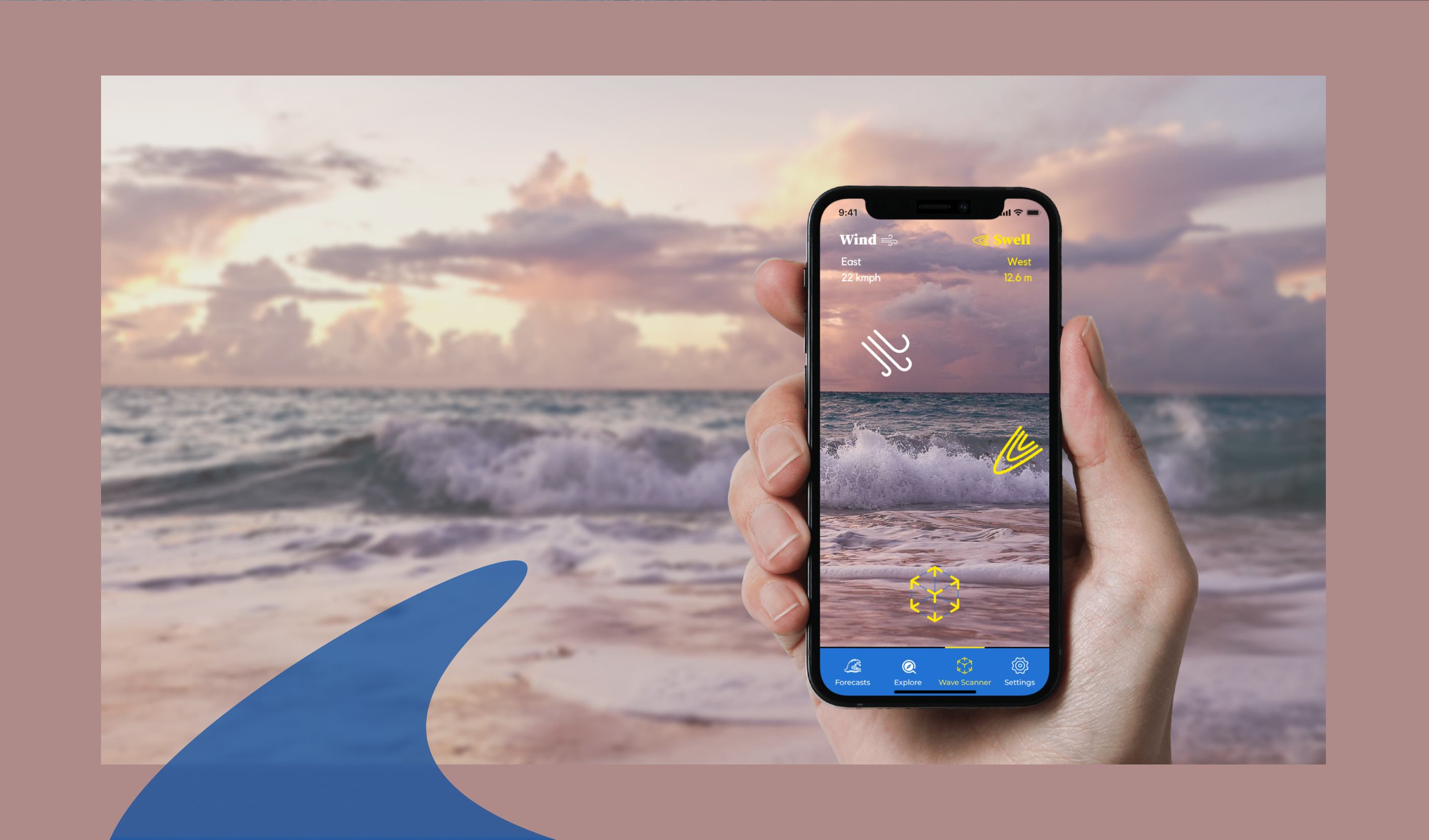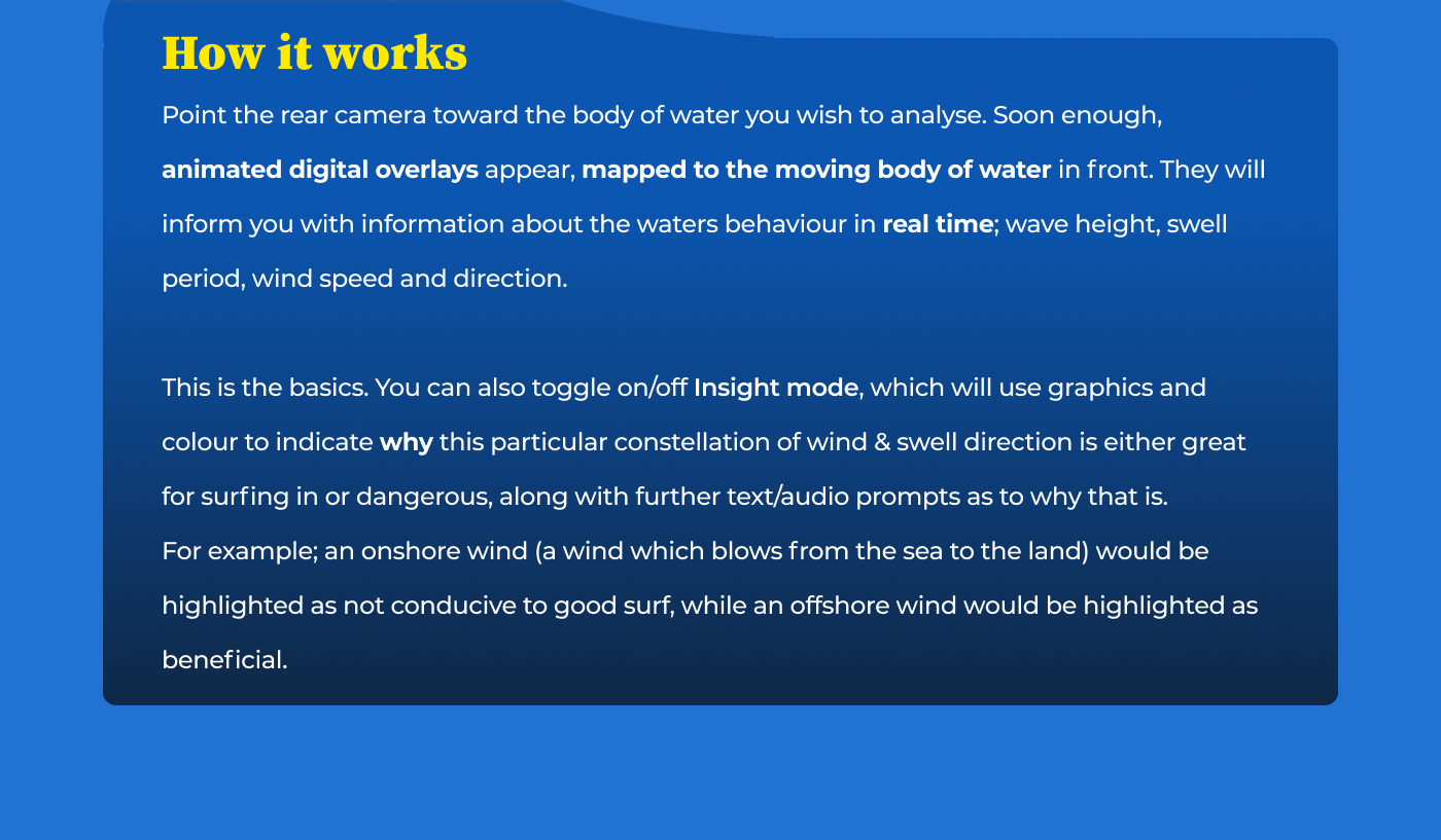 While at the beach, point camera phone to the waves to get live digital overlays that reveal what the wind and water are doing.