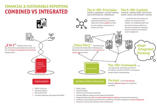 For Rittweger + Team: A visual comparison of combined VS integrated reporting to aid decisions around which reporting methods to utilises for different clients.